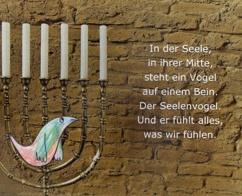 Haustiere haben in der Synagoge nichts zu suchen. Aber einen tierischen Gast haben wir (neben diversen Spinnen) doch: den Seelenvogel!