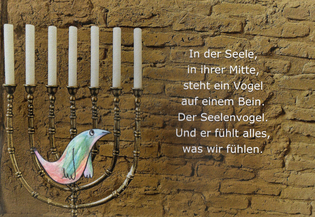 Haustiere haben in der Synagoge nichts zu suchen. Aber einen tierischen Gast haben wir (neben diversen Spinnen) doch: den Seelenvogel!