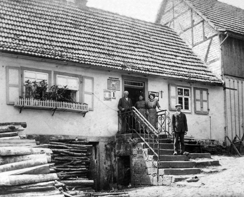 In his first marriage with Jettchen, née Blumenstiel his father had seven children. Just like his father and grandfather Simon Goldschmidt became the head of the synagogue in Heubach titled Mayor of the Jews. Together with Isaak Adler he was member of the warriors association. He is identified on the picture which shows the consecration of the flag in 1899. Together with Leopold Adler, Hermann Adler and Simon Katz, he represented the Jewish community for example in the cause of the closing down the Jewish school in 1924. According to oral reports he was part of the community representation. He was a cattle trader and ran this business temporarily with his later son-in-law Moritz Goldschmidt. On a picture published in the Chronicle of Heubach his daughter Malli is shown at the spinning parlor at teacher Euler’s home.