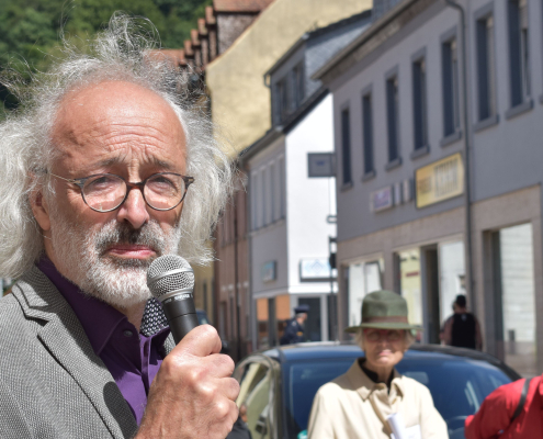 Die Biographien, die bei dieser Gedenkversammlung verlesen wurden, liegen als Gedenkbuch gebunden in der ehemaligen Synagoge aus. Hier finden sich die Namen dieser Menschen den Häusern in Heubach zugeordnet, in denen sie gelebt hatten.