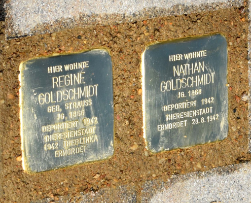 The family Goldschmidt moved to Fulda in 1910, first to Löherstraße 48. On September 16, 1942, Adolf Goldschmidt was deported from Frankfurt/Main to Theresienstadt. He died there two years later on July 8, 1944, fifty-four years old.