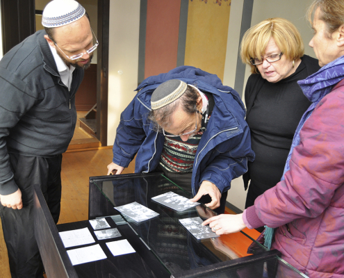 Dort informierten sich die Gäste ausgiebig über die Geschichte des Hauses und der Restaurierung. In einer Vitrine betrachteten sie unter anderem Fotos, die Simon Goldschmidt auf einem Foto des „Kriegervereins“ von 1899 und dessen Sohn Emil als Mitglied der Fußballmannschaft des TSV Heubach im Jahr 1930 zeigen. Auch Bilder von Michaels Mutter Malli gibt es – aufgenommen in Heubachs evangelischem Kindergarten.